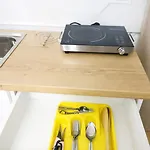 Cozy Studio With Sunny Terrace erbjuder gästerna sitthörna och ett komplett kök, samt moderna bekvämligheter som luftkonditionering. Gästerna på det här boendet erbjuds ett badrum med hårtorkar, badlakan och handdukar. Det finns också en separat toalett, en dusch och en tvättmaskin.
